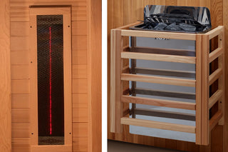 The Golden Designs Carinthia model sauna features both infrared and traditional heating elements. The model features: