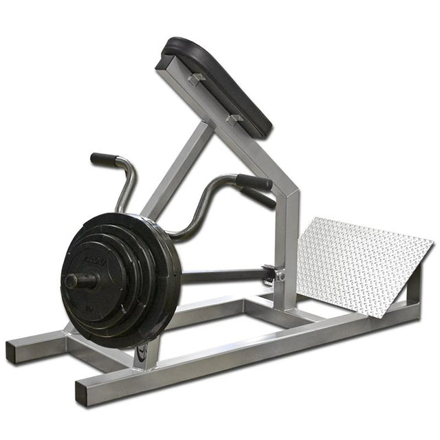 The handle setup offers both wide and neutral grip positions, allowing for varied angles of attack to stimulate different parts of the back. The lever arm operates smoothly and is finished in a durable Silver Vein coating. A rigid diamond plate foot platform provides secure footing and stability throughout the movement, helping to maintain consistent form during heavy loads.