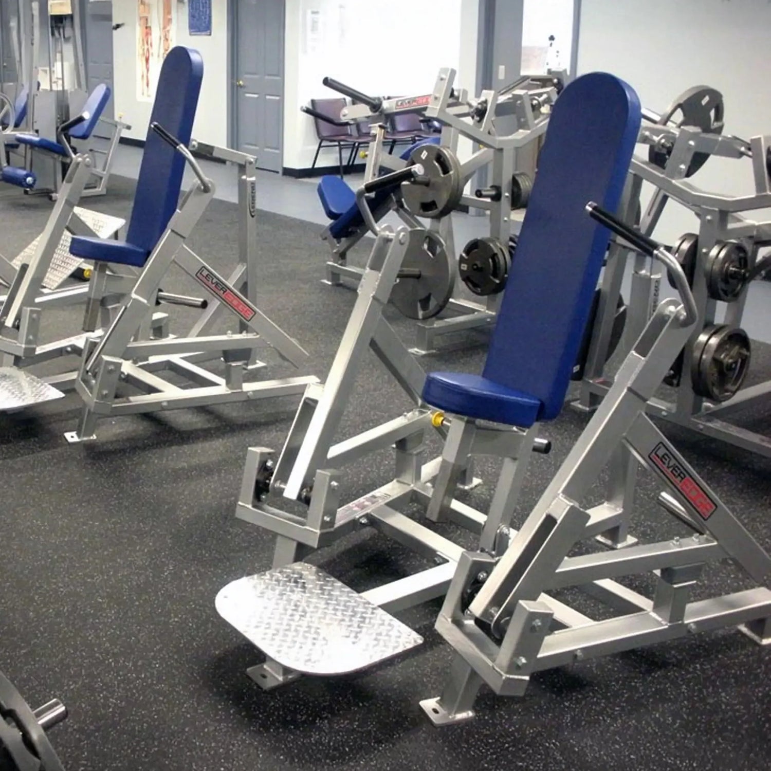 This LeverEDGE wide chest press delivers unilateral, converging motion for full chest engagement with adjustable seat, multi-grip handles, and elevated user position for optimal mechanics. Heavy-duty 11-gauge steel frame and frictionless pillow block bearings provide smooth, stable pressing under heavy loads, making it ideal for high school weight rooms, commercial gyms, and home setups. Key features include: