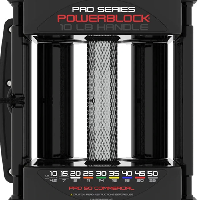 Engineered for serious lifters, the PowerBlock Commercial Pro 50 features chrome steel knurled handles that deliver a secure, non-slip grip. Whether you're pushing through heavy sets or high-rep workouts, the textured surface enhances control & confidence with every rep.