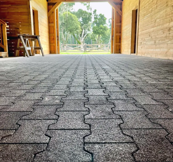 PaveSafe Rubber Pavers from ECORE deliver exceptional durability and safety for outdoor and equine surfaces. Crafted from reclaimed vulcanized rubber, these pavers offer superior slip resistance and shock absorption. This paver is 24mm (0.95") thick, but for a more robust option, check out our 44.5mm (1.75") rubber pavers. Features of the pavers include: