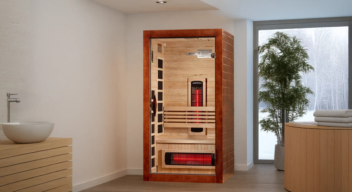 The Dynamic Santorini Full Spectrum Infrared Sauna offers powerful full-body infrared therapy in a compact espresso-stained Canadian Hemlock frame, ideal for 1–2 users. Key features of the Santorini include: