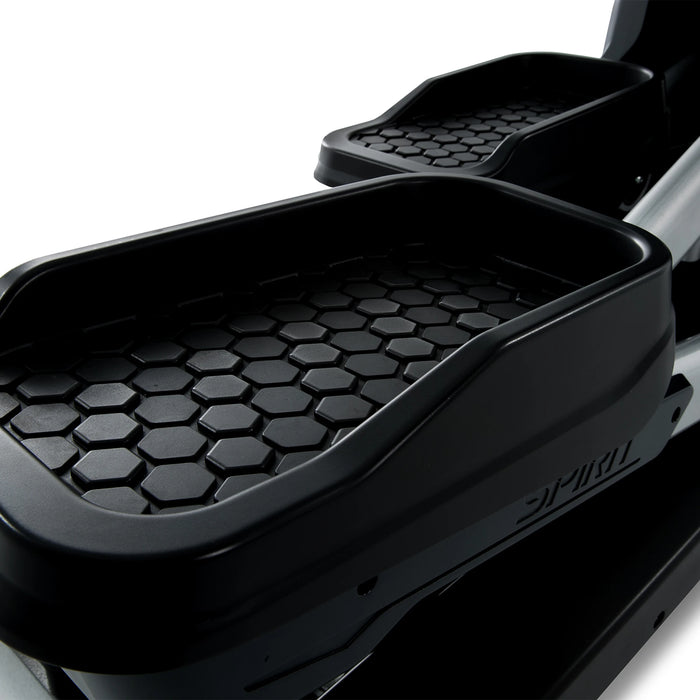 Spirit Fitness ellipticals have a 2-degree inward tilt for comfort, placing you in an anatomically correct position with padded pedals to reduce foot pressure.