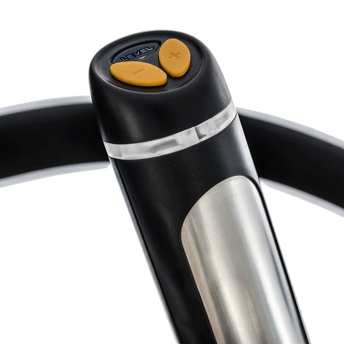 The handlebars feature hand pulse grips, resistance controls, & a start/stop/pause button, allowing fast adjustments during your workout.