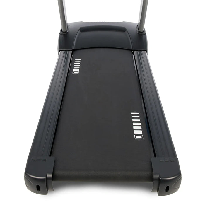 The durable commercial-grade pre-lubricated belt enhances comfort for long-term use, while the spacious 22” x 60” workout area accommodates users of all heights.