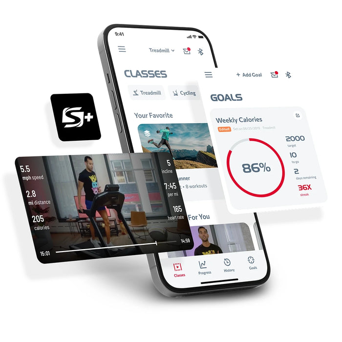 Phone-to-screen mirroring, Bluetooth app connection to the likes of Zwift & Kinomap, touchscreen display, 10+ workout programs & more!