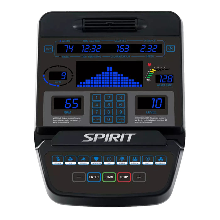 The CU900 Upright Bike by Spirit Fitness comes fully locked and loaded. This 100% commercial grade unit is the largest and most robust upright bike made by Spirit Fitness. Features include: